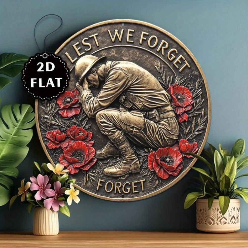 Soldier Remembrance Let's Forget Design & Red Poppy Metal Art